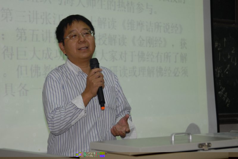 2012年10月28日晚八點,東方經典系列講座第七講如約開講,本講盛情邀請到華中師範大學文學院古典文獻學博士生導師、《華中學術》主編張三夕教授擔任主講,講解大乘佛學另一部重要經典《楞嚴經》。《古典與現代》主編楊國良教授主持本場講座。 在主持開場中,楊國良教授向聽衆詳細介紹了張三夕教授的學術背景,并圍繞張三夕教授重視學術承傳的特點,重點介紹了張教授在帶碩士生和博士生時所制定的“張門門訓”。張三夕教授學術積澱深厚,學識淵博,曾先後受業于我國著名古代文史學家程千帆先生和文獻學大師張舜輝先生門下,秉承業師大家風範,重視學術精神的承傳。 “敬業樂群、守時守信、博而能一、厚積多發……”在現場聽衆兩次齊誦中,“張門門訓”見證着薪火相傳的學術承繼傳統,也見證着張三夕教授敬業樂群,誨人不倦的師者風範。在開場中,張三夕教授也表達了對楊國良教授的謝意,感謝人文傳播學院與《古典與現代》的盛情邀請,使得有機會回到原先工作過的英国正版365官方网站,與老朋友叙舊和做學術交流。 本場講座張三夕教授以“定力與空性”為題展開對《楞嚴經》大義的解讀。聯系東方經典系列講座第三講張江南博士解讀《維摩诘所說經》,第五講熊開發教授解讀《金剛經》,張三夕教授認為對于博大精深的佛學,研讀和理解佛經應具備以下準備性的知識與經驗做基礎:一、對印度的曆史文化、地理、風俗、語言等有一定的了解;二、要了解佛教的創始人釋迦牟尼,能記清釋迦牟尼的多個稱謂和其十大弟子的名字;三、要能對佛家的基本教義和關鍵詞有精到的把握和理解,如《楞嚴經》中所涉及的“六塵”、“六根”、“六入與六出”、“十八界”等;四、要了解佛教的分層與分期;五、本人應有一定的修行經驗,特别是一種“内明”的體驗;六、要明确佛經講解釋義中的風險,講解佛經需要極高的佛學修養和内明實證功夫。 在一段專業性的指導之後,張三夕教授圍繞《楞嚴經》的經名、因緣、曆史地位及其價值展開講解。《楞嚴經》全名《大佛頂如來密因修證了義諸菩薩萬行首楞嚴經》,經名釋義豐富。《楞嚴經》的傳入和譯介則有着傳奇的經曆,據載唐中宗神龍元年(705年),中印度僧人般剌密帝用極細的白毷(毛)寫出《楞嚴經》,用蠟封妥,割開臂膀,潛藏皮下,傳到中國。傳說經四人之力,由當時宰相房融筆受潤色,得以翻譯面世。《楞嚴經》在佛經中是正法的代表,被譽為佛法的眼睛,經文集中反映了佛法的宇宙觀、人生觀、價值觀,全面道出了佛法的本體論、認識論、實踐論等諸問題,世人曾有“自從一讀《楞嚴》後,不看人間糟粕書”之說。 在接下來圍繞《楞嚴經》大義的解說中,張三夕教授首先指出《楞嚴經》的宗旨大綱和核心命題是:“信佛者面對無時無刻不在變化的 ‘塵根’,如何離塵脫根,直指人心,修煉堅固的楞嚴大定,從肉身中發現不生不滅的空性。”全經解行并重:前四卷是“解”,是經文的重點和主體部分;後六卷是“行”或“證”(修行或修證)。接着張三夕教授重點圍繞第一二卷的主體内容:“七處征心”、“十番顯見”展開講解,在其看來“七處征心”重點辨析一個心性本體論問題:心在何處?而“十番顯見”則是在辨析一個心物認識論問題:何為見性?如果說“七處征心”是破妄,那麼“十番顯見”則是顯真。在對“十番顯見”的講解中,張三夕教授以機智的佛學比喻使聽衆體悟到顯見即“見性”,我們自性即“空性”中“能見的功能”不依賴眼睛和任何物質條件而獨立存在,是永恒不息的生命之流。如何從肉身中發現不生不滅的空性是《楞嚴經》的核心問題。在張三夕教授看來,“十番顯見”有多方面的現代啟示意義:一、空性向每個個體承諾絕對自由,絕對自由轉為永恒的生命理念。二、領悟空性并不意味着拒絕俗世事務。三、見性不因對象變化而變化,能見就是一種根性。四、人性是空性在生命體中的顯現,人性同時也是空性的遮蔽。五、在感知“空性”中,世俗人生也需要定力、空性的修證。六、通過楞嚴大定的修煉而透徹領悟空性,将空性的領悟轉化為日常的道德自律,值得去思考,也不失為當下中國人喪失道德底線(即喪失定力)的解決方案之一種。七、閱讀《楞嚴經》,要領略語言的精準、美妙,值得涵泳和學習。 講座的最後張三夕教授借用南懷瑾先生《楞嚴大義序》中的一段話祝福現場聽衆:悟得真實智慧解脫的真理,使這個颠倒夢幻似的人生世界,能升華到恬靜安樂的真善美之領域。張三夕教授的博學宏富和充滿激情的精妙講解獲得了全場聽衆起立長時間雷鳴般的掌聲。在互動環節,張三夕教授還熱情的回應解答了聽衆提出的各類問題。